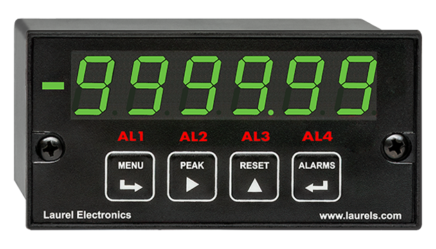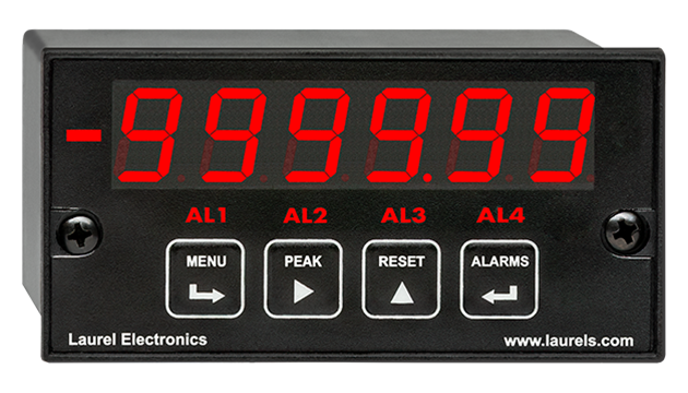 All boards are isolated from meter and power grounds. Optional Plug-in-Play boards for communications and control include Ethernet, WiFi, serial communication boardsdual or quad relay boards, and an analog output board. Laureates may be powered from 85-264 Vac or optionally from 12-32 Vac or 10-48 Vdc. The display is available with bright red or green 0.56" (14.2mm) high LED digits. The 1/8 DIN case meets NEMA 4X (IP65) specifications from the front when panel mounted. Any setup functions and front panel keys can be locked out for simplified usage and security. A built-in 5, 10, 12, or 24 Vdc excitation supply can power transducers, eliminating the need for an external power supply. All power and signal connections are via UL / VDE / CSA rated screw clamp plugs.