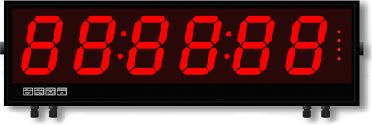 Four digit heights are available a standard: 57 mm (2-1/4"), 102 mm (4.0"), 150 mm (5.9"), and 200 mm (7.9"). Solid segments are used for normal brightness 2.2" and 4.0" digits. Individual 5 mm LED pixels are used for larger digits and outdoor brightness versions. The number of digits can be 4, 6 or 8, depending on the display function.