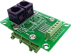 DIN rail mountable breakout board. Provides a parallel connection between two RJ11 jacks and a terminal block with 6 screw-clamp connectors. Allows a multi-point RS485 connection to Laureate meters with dual RJ11jacks and Laureate LT series transmitters with screw-clamp connectors.